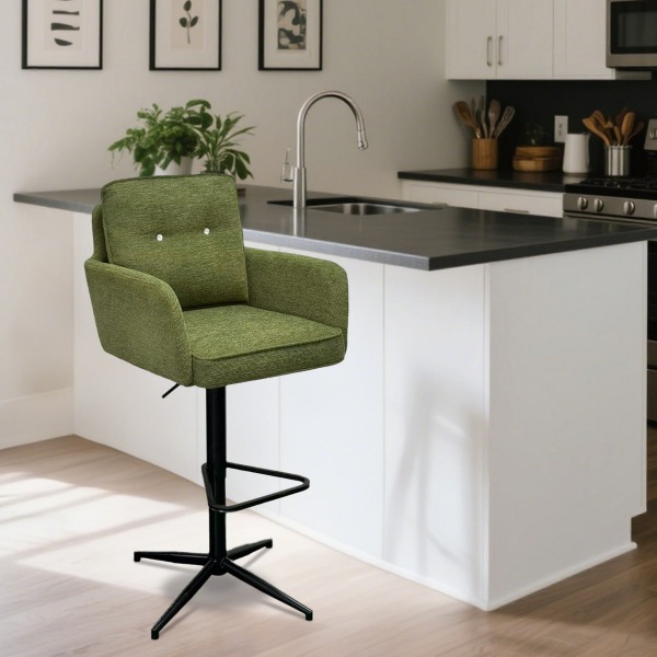 Moderner grüner Stoffverstellbares Schwenkstangenhocker mit Auto-Rendnern und Metallbasis