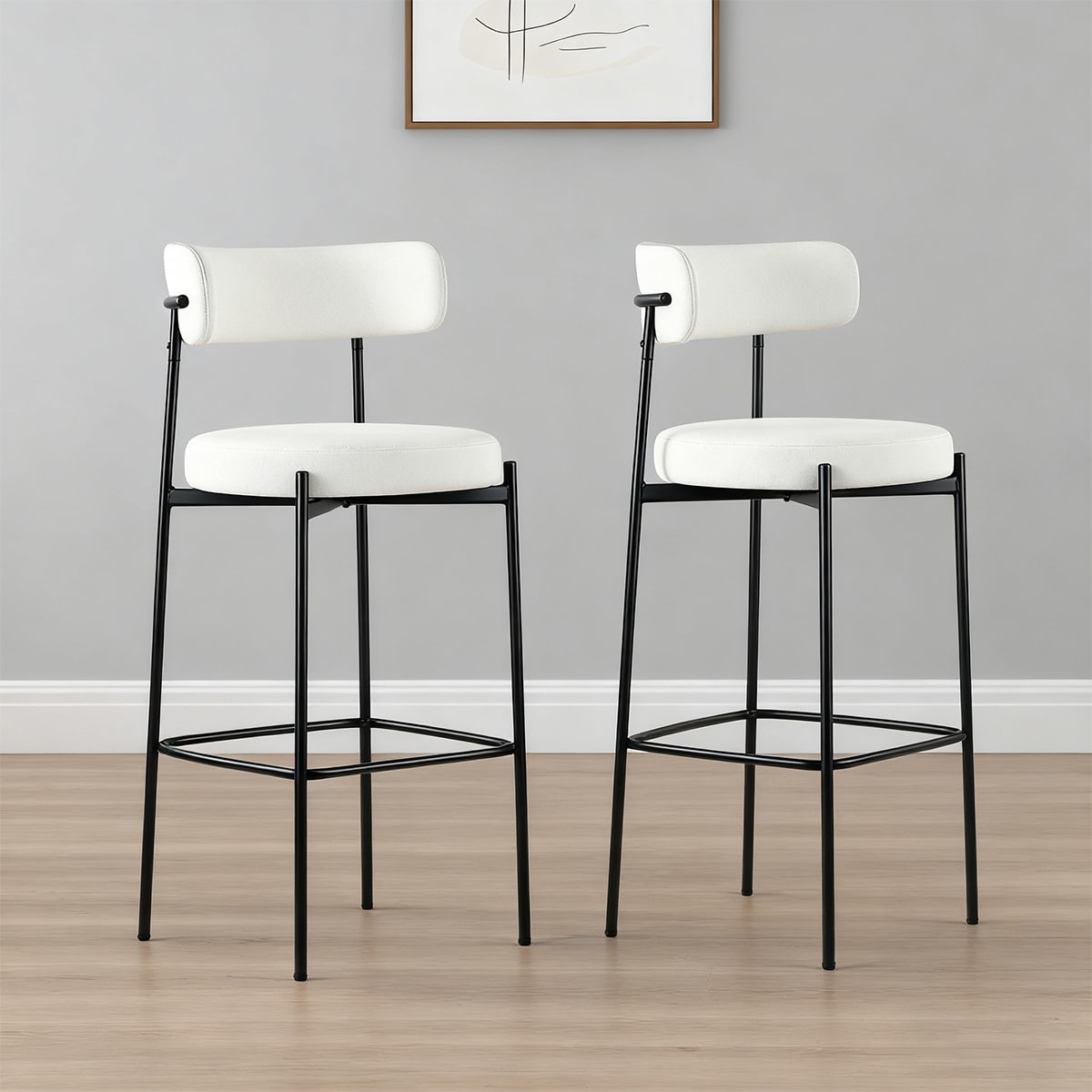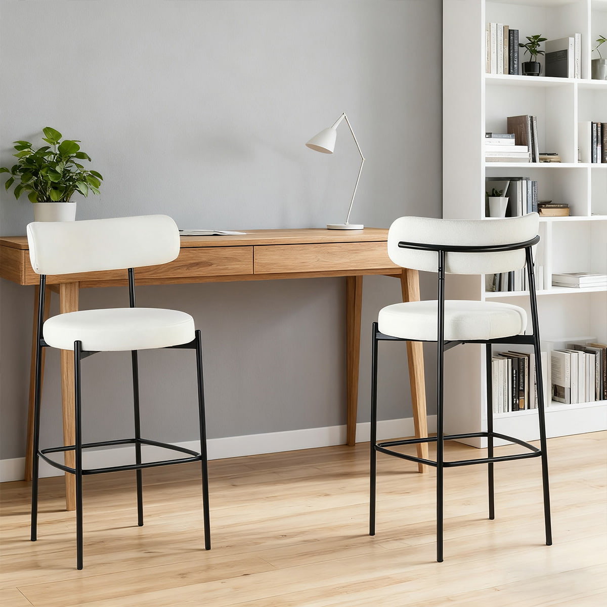 Unsere weißen Bouclé-Thekenhocker sind auf Komfort und Stil ausgelegt und verfügen über robuste schwarze Metallrahmen, hochdichte Schaumstoffsitze und ergonomische Rückenlehnen – ideal für Küchentheken, Bars, Restaurants und Hotels.