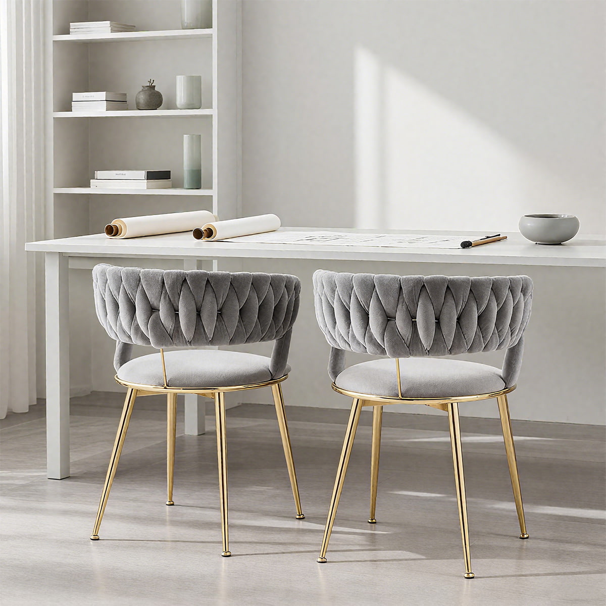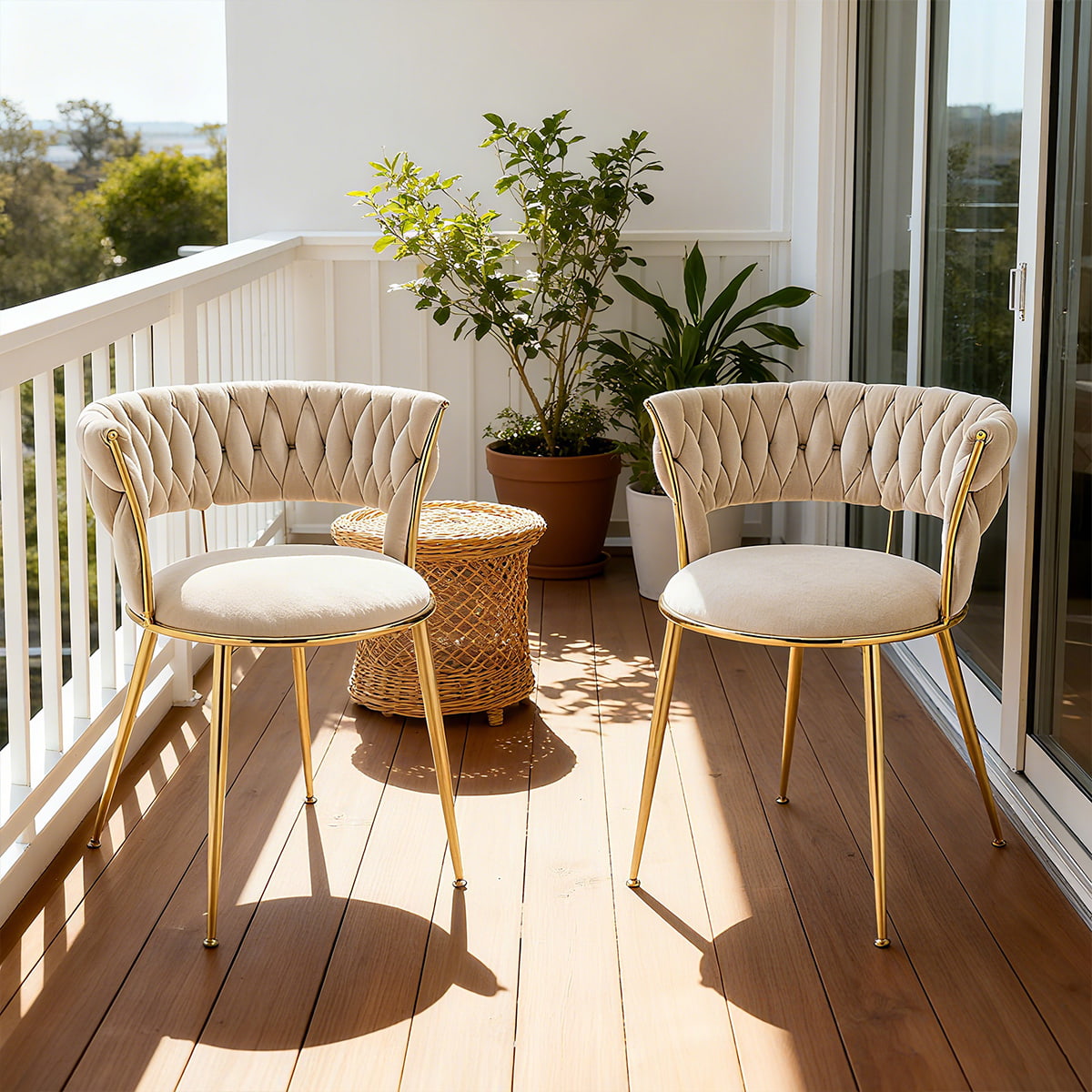mehr erfahrenRaffinierte Eleganz trifft auf funktionalen Komfort in diesem modernen Esszimmerstuhl aus elfenbeinfarbenem Samt von Anji Duomei Intelligence Furniture Technology Co., Ltd. Mit einer wunderschön geflochtenen Rückenlehne und goldfarbenen Metallbeinen wertet dieser Stuhl Ihren Ess- oder Loungebereich mit einer perfekten Mischung aus Eleganz und Haltbarkeit auf. Das ergonomische Design umschließt Ihren Rücken, während der weiche Samtstoff und der hochdichte Schaumstoff für weichen Komfort sorgen. Rutschfeste Fußkappen und ein verstärkter Aluminiumrahmen garantieren Stabilität und Langlebigkeit. Leicht und dennoch robust, fügt es sich nahtlos in moderne, Mid-Century- oder Art-Déco-Interieurs ein – ein stilvolles Statement-Stück, das jedem Raum Charme verleiht.